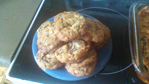Preheat oven to 350 F. Lightly grease baking sheets. Drop large cookie three inches apart. Bake for 10 to 12 minutes. Cool on sheets for 2 minutes; transfer to paper towels for 2 minutes and transfer to a rack to cool.