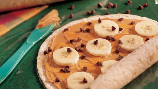 Spread 2 tablespoons of the peanut butter evenly over each tortilla. Drizzle 1 tablespoon of the honey over each tortilla. Top with banana slices and chocolate chips.