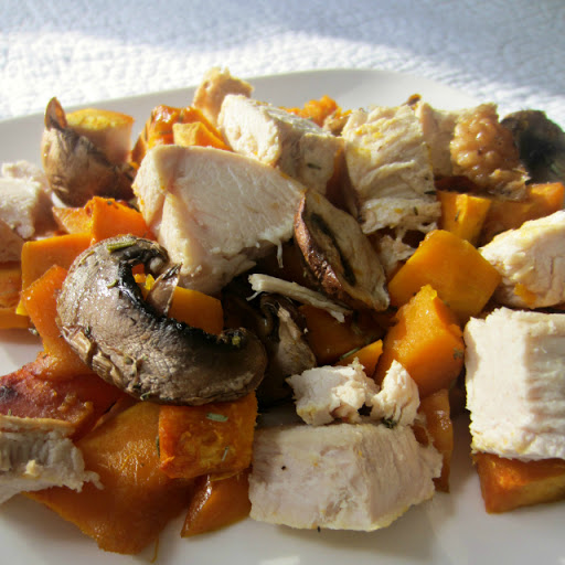 Roasted Kabocha and Mushrooms with Leftover Turkey
