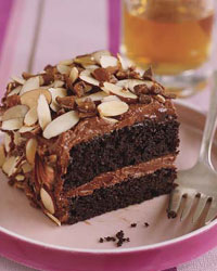 With its layers of tender chocolate cake and chocolaty sour cream frosting, this dessert on its own is completely spectacular. But Patti Dellamonica-Bauler, the pastry chef at One Market in San Francisco, takes it one step further by covering it in toasted almonds and crushed toffee candy.