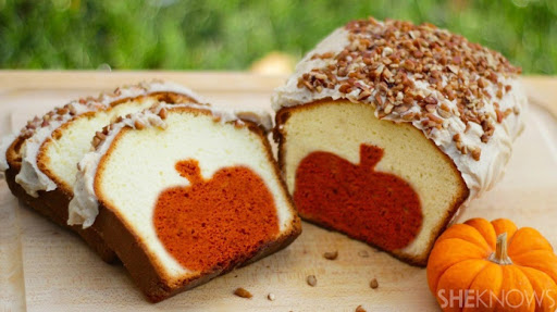 Cut into slices and delight your guests with the pumpkin-shaped surprise that peeks out from inside!