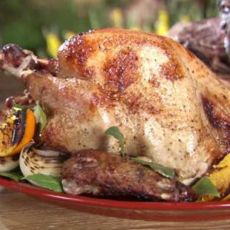 Place the turkey on the grill, cover and grill until an instant-read thermometer inserted in the thigh registers 175°F, 2 hours 15 minutes to 2 1/2 hours. Let the turkey rest 1 hour before carving.