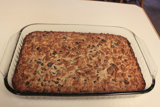 Beat Eggs; Add sugar, flour, baking powder, bread crumbs, and milk.