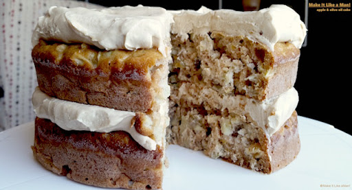 Apple cake is an autumn tradition. This is made with olive oil and maple frosting. It maybe a bit untraditional, but it is beautiful, and delicious.