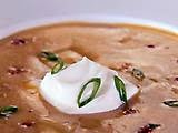 Ladle soup into bowls and garnish with a dollop of sour cream and a few chopped green onions.