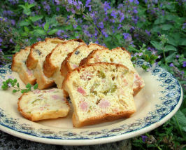 Another one of my savoury "cake" recipes from France. This recipe is slightly more substantial than my Chic and Cheerful - Savoury French Olive, Cheese and Onion Cake, as this recipe contains ham with white wine and port! Serve this as alternative sandwich bread or as a light snack spread with cream cheese or butter. This cake recipe will also make fantastic little appetisers if the loaf is cut into small cubes and served with olives, cubes of cheese and savoury spreads. Please note that the texture of this savoury cake is NOT like a sweet dessert cake - it will be slightly holey with a robust and slightly chewy texture, almost like sourdough.