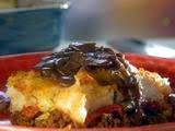 To assemble, in a 9 by 12-inch baking dish layer half of beef, pressing down to pack in, then sprinkle the cheese on evenly. Pour the remaining half of the beef over the cheese and press down. Next, add the sauteed vegetables and top with the mashed potatoes, spreading out with a spatula or the back of a spoon to even out and to form decorative peaks and valleys. Sprinkle top with paprika and bake for 30 minutes or until edges on potatoes turn golden brown. Serve with Mushroom Onion Gravy.