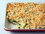 Combine the bread crumbs and Gruyere and sprinkle on top of the zucchini mixture. Dot with 1 tablespoon of butter cut into small bits and bake for 20 minutes, or until bubbly and browned.