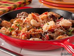 Heat 1 tablespoon of olive oil in a large skillet over medium heat. Add the sausages, cover, and cook until cooked through, about 5 minutes. Add shrimp and cook in hot skillet just until hot, about 1 minute. Remove sausages and shrimp from the pan, cool sausages slightly before slicing into 1" pieces, set aside.