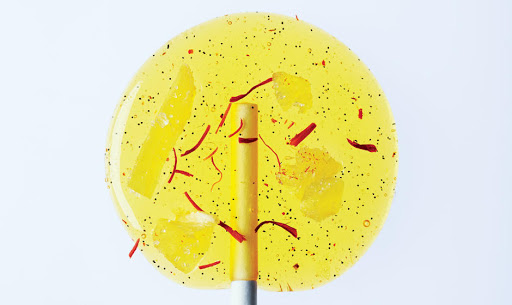 Line 2 rimmed baking sheets with silicone baking mats or parchment paper (lightly coat parchment with nonstick spray). Have lollipop sticks, candied ginger, and extra saffron at the ready.