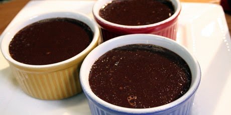 1. Heat the oven to 325ºF/160°C. Heat the cream, milk, and vanilla. Melt the chocolate over a bain-marie. Whisk the melted chocolate into the yolks in a bowl, then whisk in milk. Strain. Pour into 6 ramekins and bake in a bain-marie until set at the edges, but slightly jiggly still in the centre, 20 minutes. Remove. Cool. Wrap and refrigerate several hours before serving.