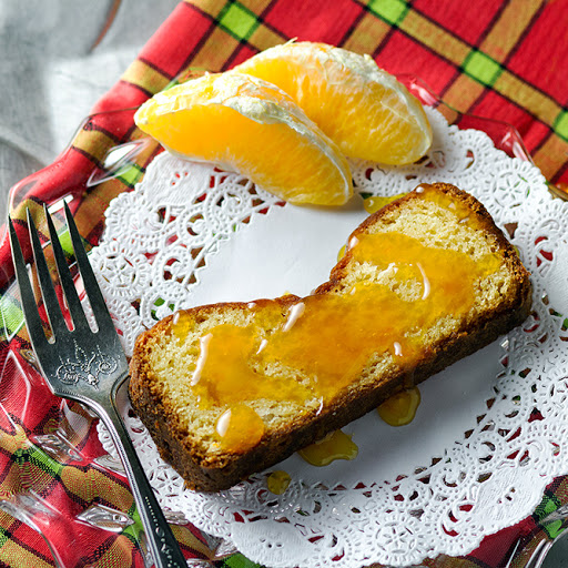 For Orange sauce: Place ½ cup orange juice in small saucepan and heat until it just begins to boil. Turn down heat and continue to simmer until slightly reduced. Add 1/2 cup powdered sugar and 1 tbsp. grated orange peel and boil and stir until syrupy. Let cool slightly and then serve over sliced bread.