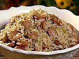 Meanwhile heat oil in a heavy-bottomed saute pan over medium-high heat. Brown the sausage. Once browned, add the garlic, onion, celery, and green bell pepper. Cook until softened, about 5 minutes. Season with salt and pepper. Add 1 cup chicken stock and cayenne. Cook until the stock has reduced a little. Add the cooked rice and parsley and stir thoroughly. Taste and season with salt and pepper, if necessary.