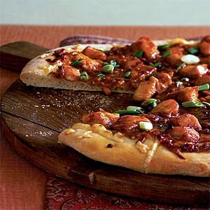 Sprinkle cheeses over prepared crust, leaving a 1/2-inch border, and top with chicken mixture. Bake at 500° for 12 minutes on bottom rack in oven. Sprinkle with green onions. Place pizza on a cutting board; let stand 5 minutes.