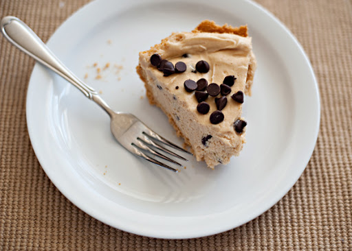 Whip the heavy cream and set aside. Cream together the peanut butter, cream cheese and sugar. Add the vanilla. Fold the whip cream mixture into the peanut butter mixture. Add the chips. Pour into cooled crust. Chill before serving. Enjoy!
