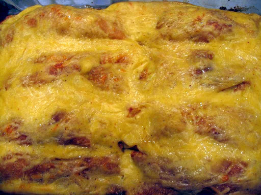 Forming the roulades: Place 2 to 3 tablespoons filling on the bottom third of each crepe - on the under and less attractive side. Roll and place seam side down into a buttered baking dish. Bring 1/2 cup of the sauce to the simmer, and add droplets of milk, thinning it so that it coats the back of a spoon nicely. Spoon the sauce over each roulade, and sprinkle cheese over each.