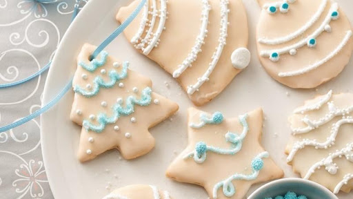 Bake 10 to 12 minutes or just until edges are golden. Cool on cookie sheets about 1 minute before removing to cooling rack. To make cookies for hanging, using a toothpick or end of plastic straw, carefully poke a hole in the top of each cookie while cookies are still hot. Cool 10 to 15 minutes before frosting.