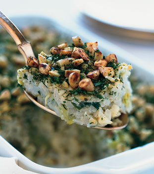 Cauliflower-Leek Kugel with Almond-Herb Crust