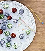 1.Place the chives, paprika and poppy seeds in separate shallow bowls. Using your hands, roll the goat cheese into 36 small balls (about 1/2 teaspoon each). Roll 12 goat cheese balls in each bowl to coat.