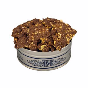 While brittle is cooling, spread melted milk chocolare over entire surface (approximately 1/8" thick) and dust with chipped pecans.