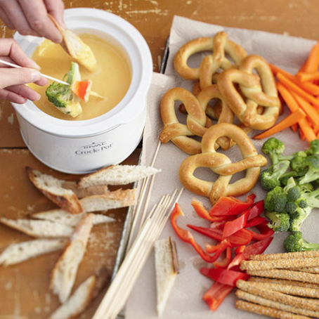 At the tailgating site, plug slow cooker into car adapter and keep fondue warm on warm-heat setting. (Fondue will keep warm, covered, on warm-heat setting for up to 4 hours.) Stir fondue before serving. Serve with desired dippers.