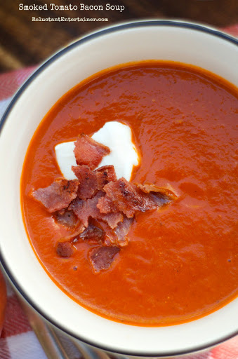 Fresh garden tomato soup with savory bacon and a bite of smoked paprika.