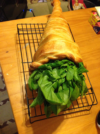 Bake at 350 degrees F (175 degrees C) for 45 minutes or until bread is a rich brown. (If parts start to darken too much, cover them with pieces of foil.)
