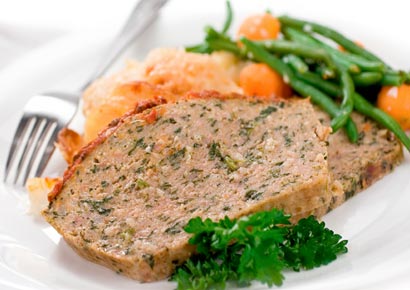 Shape into a free-form loaf about 7" long and 4 1/2" wide on the prepared baking sheet. Bake for 50 to 60 minutes or until a thermometer inserted in the thickest portion registers 165°F. Let stand a few minutes before slicing.
