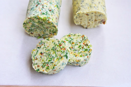 Put the butter with all the ingredients in a bowl, and mix with a rubber spatula until well combined. Transfer the butter onto the center of saran wrap or parchment paper. Roll it up, shape into neat rolls that measure about 4 to 5 inches long and tie the ends with kitchen strings. The flavored butter can be kept in your fridge for up to 1 week, or in the freezer for up to 1 month.