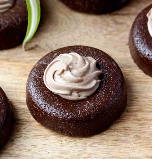 Add all ingredients to a good quality personal blender and blend until super smooth and creamy then place into the fridge to cool and become firm enough to add to a piping bag and pipe into the center of the cookies.