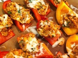 3 Blot excess moisture from peppers with paper towels, if necessary. Using a heaping Tablespoon, scoop filling onto pepper wedges.