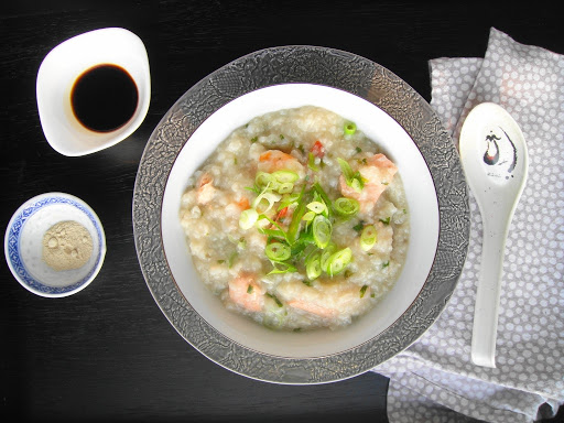 When congee is done, change setting to ‘keep warm’. Add fish and seafood to rice cooker. Stir and cover for 5 minutes or until seafoods is cooked through. Add salt to taste and stir in cilantro. Garnish with green onions and serve with white pepper and tamari sauce.