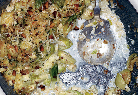 Cauliflower and Brussels Sprout Gratin with Pine Nut-Breadcrumb Topping