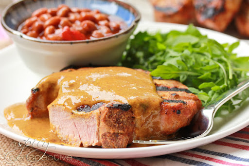 Serve the BBQ Pork Chops warm with extra mustard BBQ sauce and Bush's Southern Pit Barbecue Grillin' Beans!