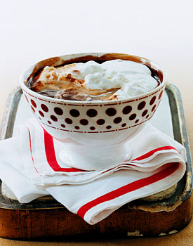 Divide coffee mixture between 2 large mugs, then top with whipped cream.