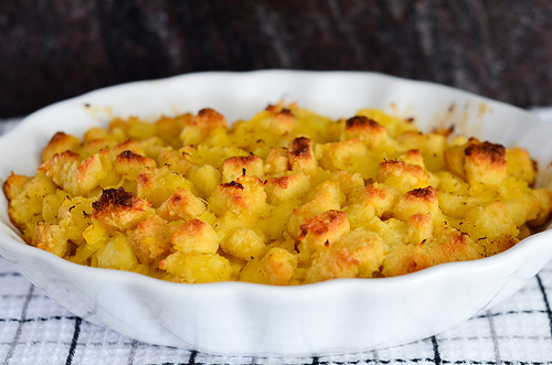 Bake in a greased 1 1/2 quart casserole dish for about 1 hour at 350 degrees uncovered.
