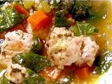 In the meantime, for the soup, heat the olive oil over medium-low heat in a large heavy-bottomed soup pot. Add the onion, carrots, and celery and saute until softened, 5 to 6 minutes, stirring occasionally. Add the chicken stock and wine and bring to a boil. Add the pasta to the simmering broth and cook for 6 to 8 minutes, until the pasta is tender. Add the fresh dill and then the meatballs to the soup and simmer for 1 minute. Taste for salt and pepper. Stir in the fresh spinach and cook for 1 minute, until the spinach is just wilted. Ladle into soup bowls and sprinkle each serving with extra grated Parmesan.