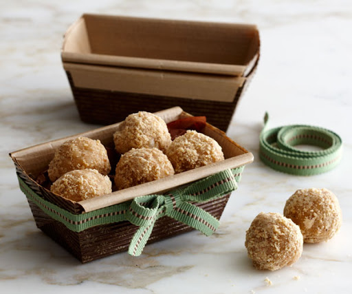 Scoop the mixture by the rounded teaspoonful, then roll into 1-inch balls with your hands. Put on a rimmed baking sheet, cover with plastic wrap, and refrigerate for at least 12 hours and up to 2 weeks. Just before packing, roll the balls in the reserved confectioners’ sugar, coating them evenly.