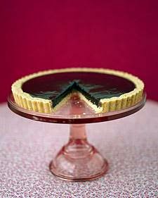 4. Pour chocolate mixture into center of cooled tart shell (if chocolate is lumpy, pass through a sieve). Let stand until set, about 2 hours, or chill for 1 hour.
