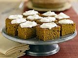 To make the icing: Combine the cream cheese and butter in a medium bowl with an electric mixer until smooth. Add the sugar and mix at low speed until combined. Stir in the vanilla and mix again. Spread on cooled pumpkin bars.