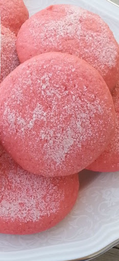 Use a glass to flatten each cookie (I also sprayed the bottom of the glass with the cooking spray) and then generously sprinkle the other package of dry Jello mix onto the top of each cookie.