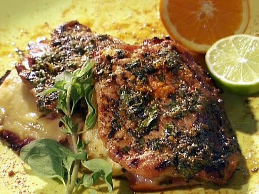 Whisk the remaining orange and lime juices, oregano, and the cilantro with the olive oil and salt and pepper, to taste. Spoon over the chops and serve.