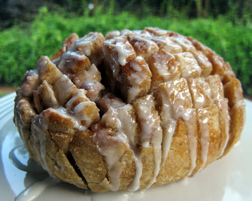 Cut the bread lengthwise into 1/2" slices, without cutting through the bottom crust. Spread vanilla honey butter in between slices. Rotate the bread 90 degrees and slice the bread again into 1/2" pieces, without cutting through the bottom crust. Spread more vanilla honey butter in between new cuts. This doesn't need to be perfect - just make sure there is lots of butter in between all the cuts. Combine sugar and cinnamon. Generously sprinkle in between all cuts. (You may have extra butter and cinnamon sugar. It will just depend on how large your bread loaf is.)