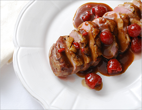 Transfer breasts to plate and pour off the fat from the pan, reserving. Return duck breasts to the pan, skin side up, and place in the hot oven for 8 to 10 minutes, until an instant-read thermometer inserted diagonally into center registers 125°F for medium rare [unlike chicken, this is perfectly safe—and delicious]. Remove from the oven. Transfer breasts to cutting board, tent with foil and allow to rest.