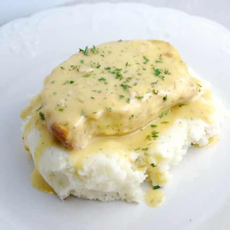 Quickly seared pork chops finished off in a crockpot with Ranch seasonings and served with mashed potatoes. Enjoy!