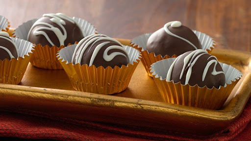 Refrigerate truffles about 10 minutes or until coating is set. Drizzle some of the truffles with mixture of 1/4 cup powdered sugar and 1/2 teaspoon milk. Refrigerate just until set. Serve at room temperature. Store in airtight container.