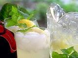 In a 1 gallon container, place sugar and hot water, and stir until sugar dissolves. Add lemon juice and cold water to render 1 gallon. Stir until well mixed. Pour lemonade over glasses of ice, squeeze slice of lemon on top of each, and garnish with a sprig of mint.