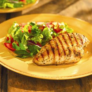 3.DIP chicken in olive oil mixture to coat evenly. Place on hot grill pan. Cook 6 to 8 minutes per side until juices run clear and thermometer reads 165° F. Allow to rest 5 minutes before serving.