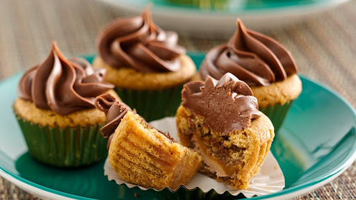 Spoon about 3/4 cup frosting into pastry bag with a star tip. Pipe frosting on top of each cookie cup.