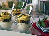 Spoon grits into mug, about 2/3 full. Spoon sausage on top of grits. Add poached or scrambled egg. Sprinkle cheese on top then garnish with parsley.